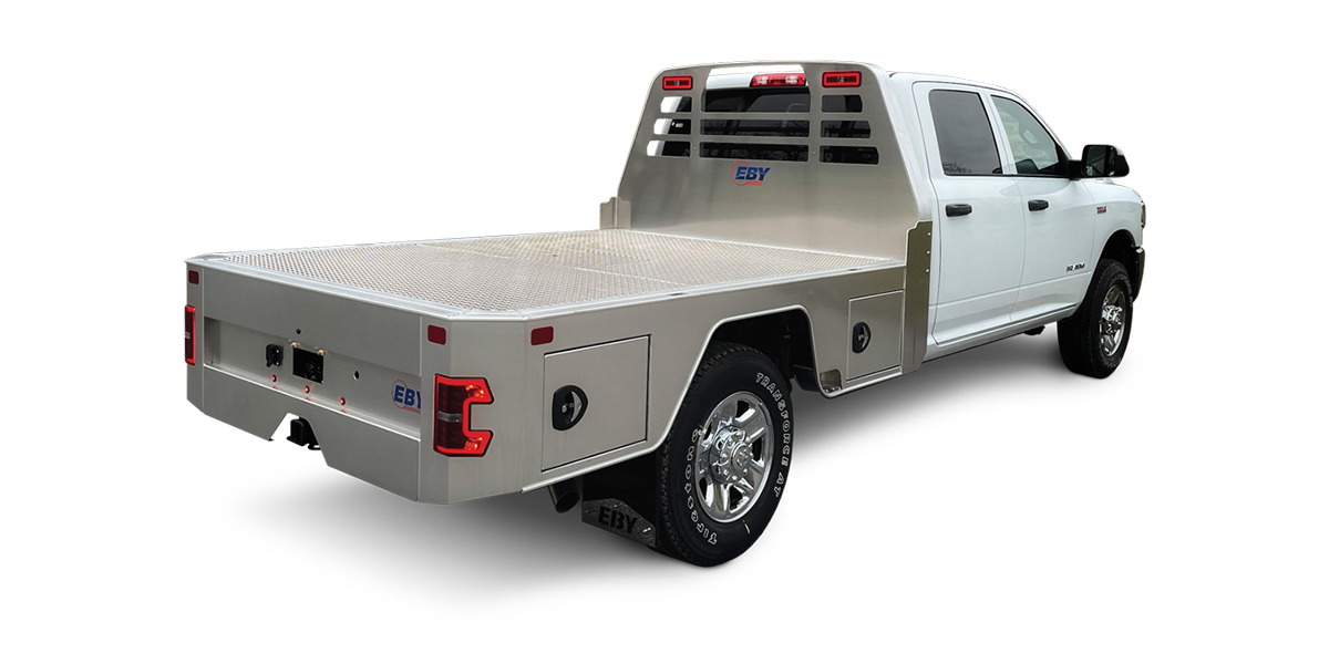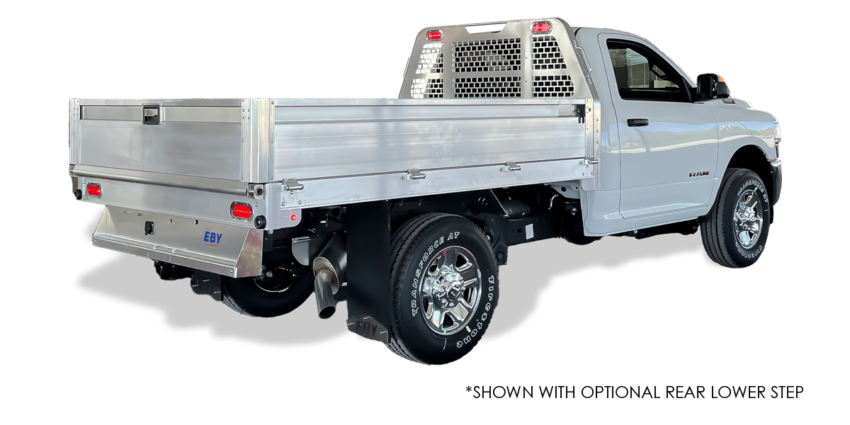 The heavy duty flatbed you love, now with full skirted sides & integrated cabinets!